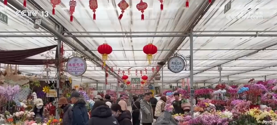 在广西南宁,增添喜庆的装饰品和鲜花成为年货市场里的“抢手货”。