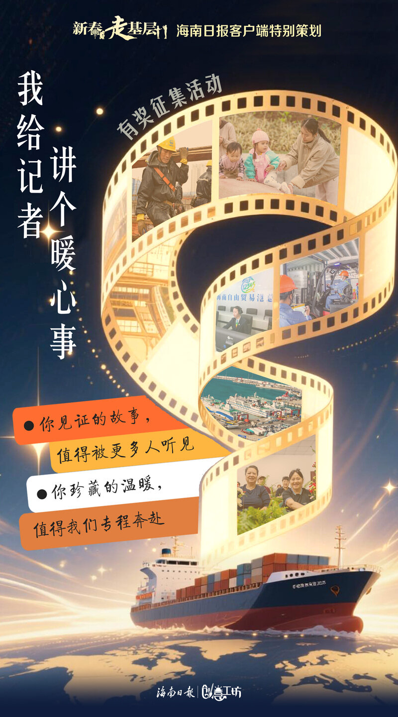 春节前夕,海南日报客户端发起“新春走基层·我给记者讲个暖心事”有奖征集活动,邀请广大网友分享身边的温暖瞬间与动人故事。短短10天,活动便收到各类故事线索近30条。海南日报记者第一时间深入一线,对其中有温度、有价值、有共鸣的民生实事、自贸港发展印记和典型故事进行实地走访。即日起,本报将陆续推出系列报道,把这些直抵人心的暖心故事讲给更多人听。