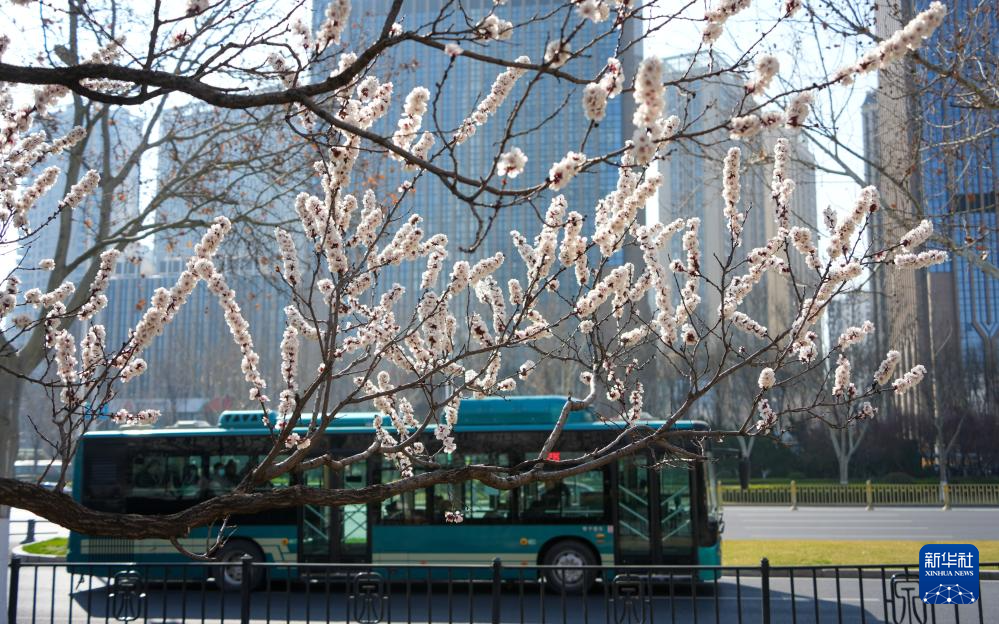 近日,山东省济南市气温回升,市区里杏花陆续盛开,为城市增添了春天的气息。