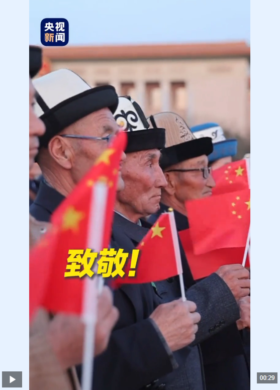 近日,来自新疆阿克陶县的35名老护边员来到北京天安门广场观看升旗仪式,看着五星红旗冉冉升起,他们庄严肃立,眼中泪光闪烁。这群用一生守护了祖国的老人,这一次圆了北京梦。