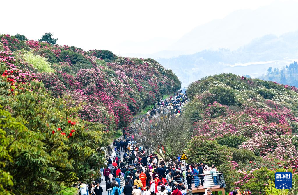 游人如织的贵州百里杜鹃管理区普底景区(4月1日摄)。