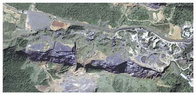 江西新余市金石山矿山公园2020年卫星遥感图。