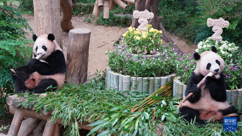 韩国爱宝乐园大熊猫“睿宝”“辉宝”庆生