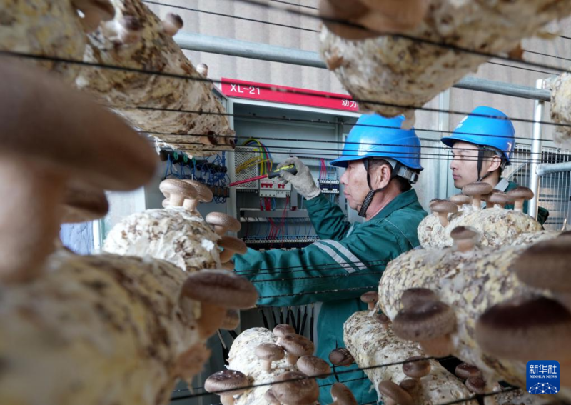 2月11日,国网平山县供电公司员工在辖区古月镇香菇种植基地为农民检修大棚用电设备。