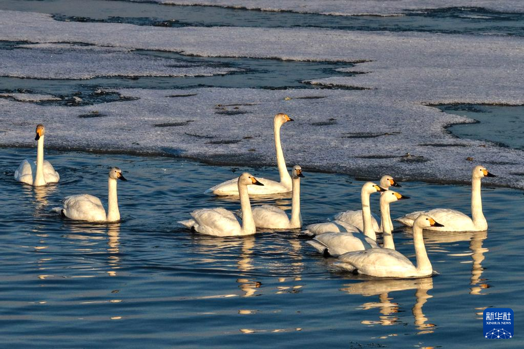 近日,随着气温回升,黑龙江省佳木斯市境内的松花江富锦段冰融水暖,迎来大批北归天鹅。开化的水域成为候鸟的乐园,为春日江畔增添了勃勃生机。