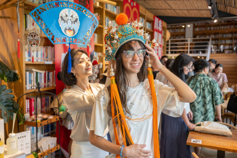 舞台上,扮相精致、身姿曼妙的青衣演员,身着流光溢彩的传统戏服,倾情演绎着经典川剧选段,将古色古香、韵味悠长的川剧氛围渲染得淋漓尽致,引得过往游客纷纷驻足,沉醉于这难得一见的艺术盛宴之中。留学生们也满怀好奇与热情,在演员的悉心指导下,沿着精心设计的动线,移步换景,仿佛穿越时空,亲身体验了一把“人在戏中游,戏在景中生”的独特观演模式。
