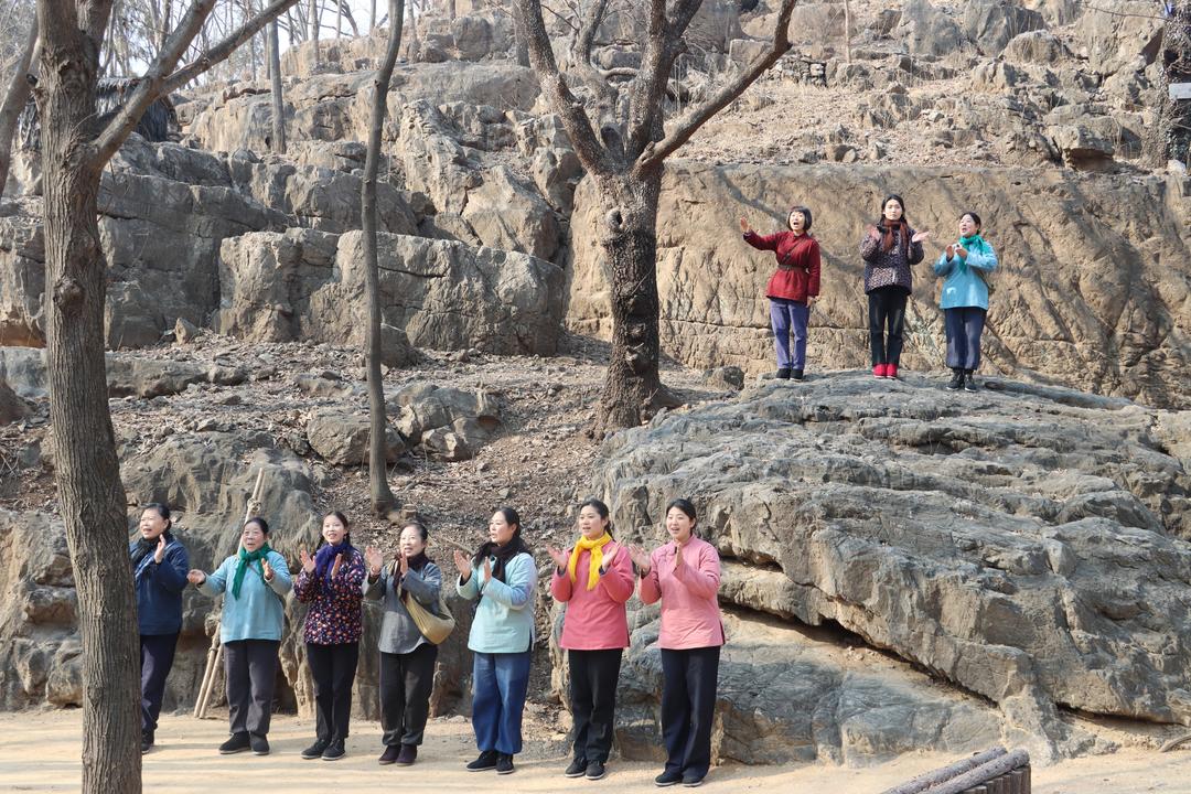 “人人那个都说哎,沂蒙山好!沂蒙那个山上哎,好风光……”2月18日,农历正月初二,沂南县马牧池乡常山庄村的山东红嫂家乡旅游区里,歌声从常山上一块黝黑的巨大山石上面传来,演唱者是红嫂家乡旅游区艺术团的三名女演员,石头下面7名女演员整齐地排成一队和声,由于演唱形式新颖,吸引了众多外地游客。这种备受游客喜欢的演唱,今年春节假期每天演出两场。